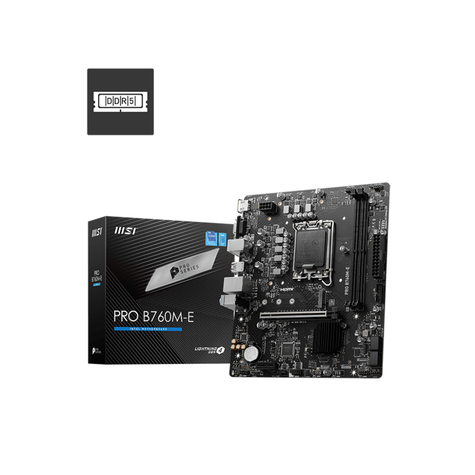 MSI PRO B760M-E DDR5 Intel® 14th/ 13th/ 12th Gen Processors 1 x M.2 slots and 4 x SATA 6Gb/s ports 2 x DIMM, Max. 128GB, DDR5 RAM