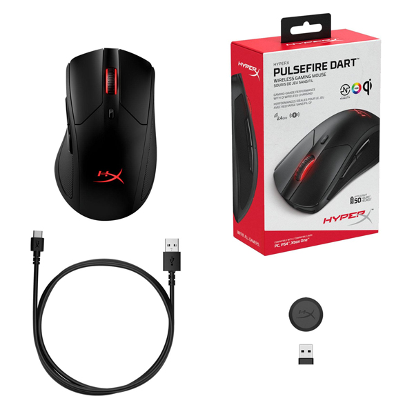 HyperX Pulsefire Dart™ is a gaming-grade wireless mouse with a reliable 2.4GHz RF connection that will make you wonder why you waited so long to cut the cord. A wireless adapter is included to extend the range for desktop PC setups. It is Qi Certified for wireless charging1 and can last up to 50 hours2 on a single charge. With a Pixart 3389 sensor and a split-button design featuring reliable Omron switches, you’ll have all the accuracy you need to crush the competition. It’s ergonomically-shaped and features padded leatherette side grips designed to keep you comfortable during those long nights of gaming. Customize RGB lighting, create macros, manage battery life, and adjust DPI settings with the easy-to-use HyperX NGENUITY Software.