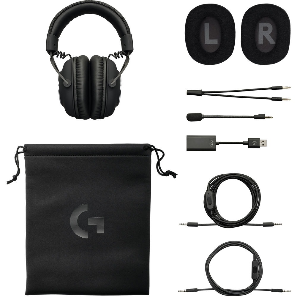 Logitech Pro X Gaming Headset, Blue Voice, DTS Headphone X2.0 Surround Sound, USB Sound Card, Studio Quality, Steel, Aluminum, Detachable mic, Carrying bag, Memory foam