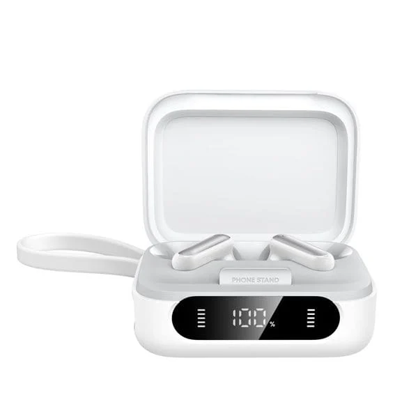 Compatible With: Mobiles & Tablets Connectivity: Wireless Battery Life: Up to 192 Hours Noise Cancellation: Yes Charge Your Phone from the Case – 3,000 mAh battery with 10W output charges an iPhone 16 Pro up to 50% or a Samsung S24 up to 45%. Battery That Lasts for Days – 12 hours of playtime from the earbuds, extended to 192 hours with the case; a 10-minute quick charge adds 5 extra hours. Smart Noise Cancelling – Continuously monitors your surroundings and blocks noise so you can fully immerse yourself in your audio. Bass You Can Feel – 11 mm drivers with BassUp technology for deep, powerful sound. Clear Calls + Built-In Phone Stand – 6 mics with AI noise reduction for crystal-clear calls, plus an integrated stand
