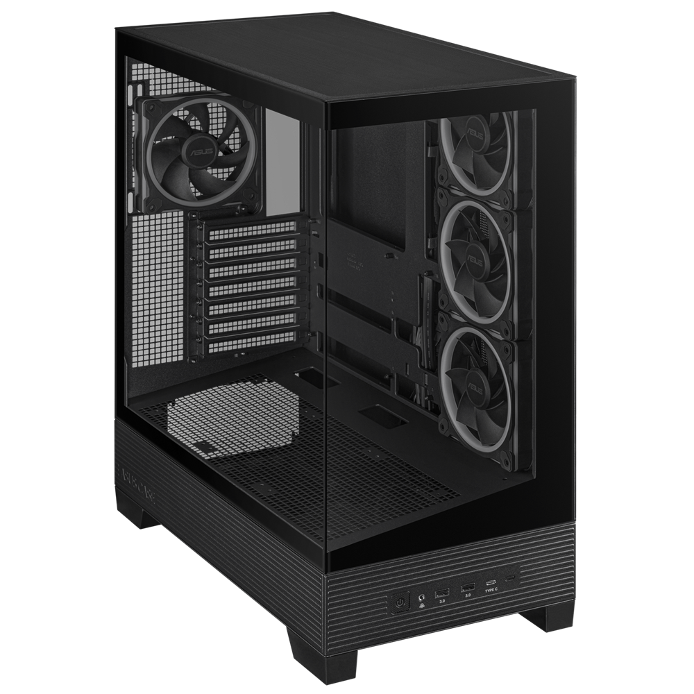 The ASUS A31 PLUS is a PC case crafted for minimalist mainstream DIY PC builders. It supports a variety of AIO coolers and graphics cards, and easily accommodates motherboards with hidden connector designs, ensuring a clean, clutter-free setup.