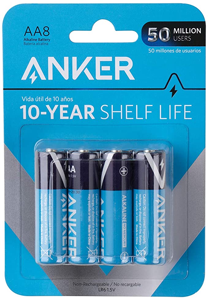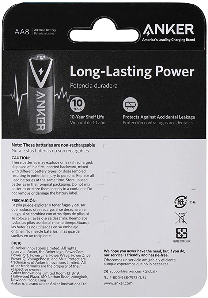 Anker Long-Lasting Leak-Proof with PowerLock technology Batteries High-capacity dual-A batteries with adaptive power and superior safety (non-rechargeable) with an energy-tight seal that keeps the energy inside the battery for ten years (Pack of 8)